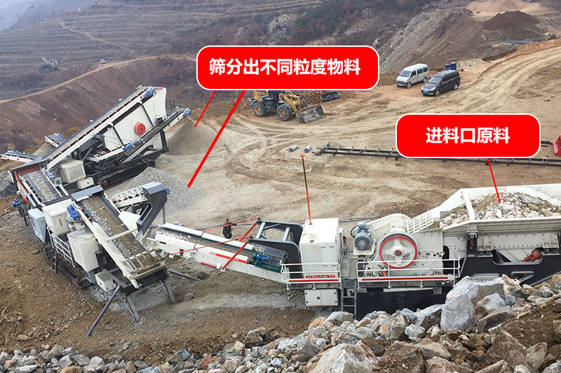 二合一指的是兩臺車為一套:第一臺車上放給料機+鄂破(粗破),第二臺車上放反擊破+篩子(細破),注:軟料(反擊破、重錘破),硬料(鄂破、圓錐破)